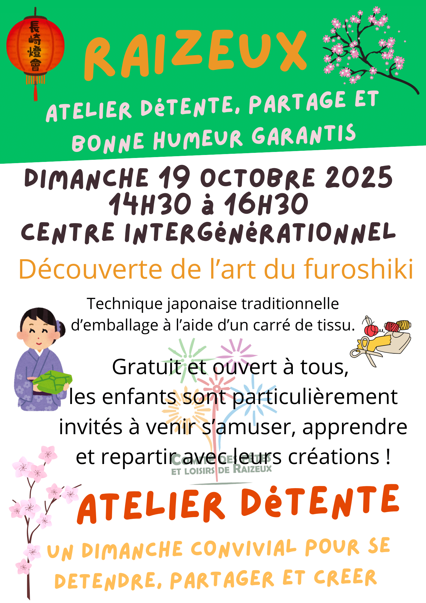 Les enfants sont tout particuliĂšrement invitĂ©s Ă venir participer Ă un atelier dĂ©couverte du Furoshiki â un art japonais aussi beau quâĂ©cologique !