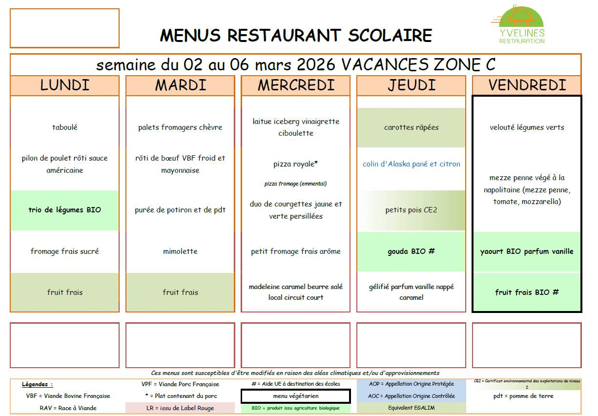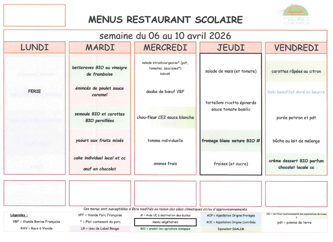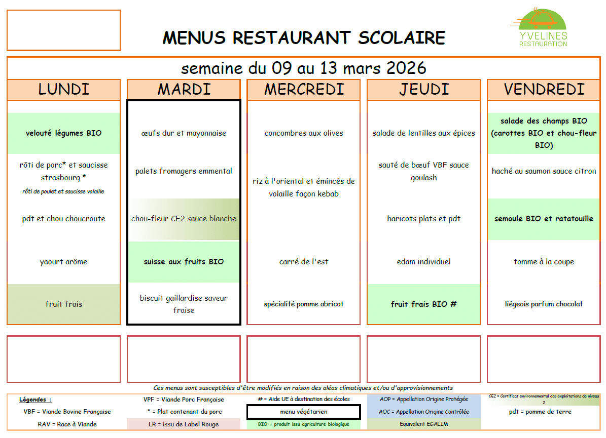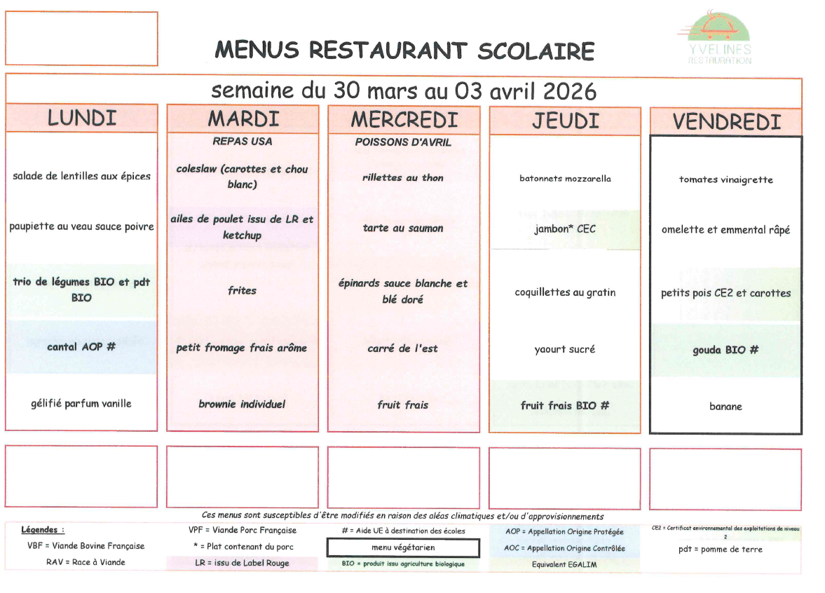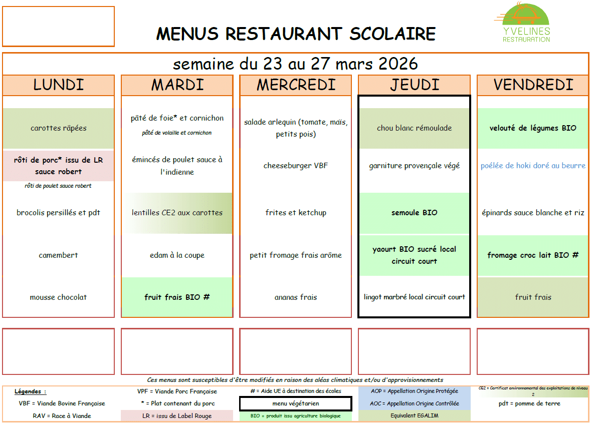 Menus de la restauration scolaire